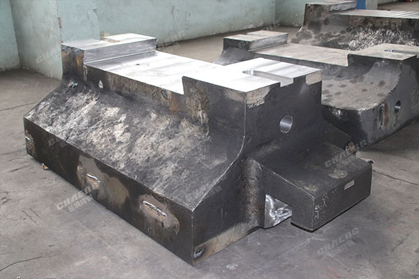 砧座是模鍛錘打擊的支承面,是支撐下砧、承受錘擊力的重要零件,結(jié)構(gòu)相對(duì)簡(jiǎn)單,屬于簡(jiǎn)單且比較厚的鑄鋼件。模鍛錘的工作環(huán)境比較惡劣,也是受力比較大的零件(砧座會(huì)受到頻繁的沖擊和過(guò)載,特別是在終鍛時(shí),過(guò)載情況更為嚴(yán)重,砧座容易出現(xiàn)損傷)。
